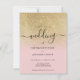 An elegant chic black handwritten script calligraphy with glam blush pink, and gold glitter ombre wedding invitations.