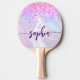Glam Pink Gold Glitter Monogram Script Purple Ping Pong Paddle