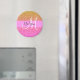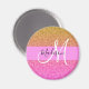 Girly and glam hot pink and orange, yellow, gold mermaid glitter sparkles gradient monogram name and initial magnet. Your custom name and monogram are written in an elegant hand lettered script with a pink background. A perfect birthday or Christmas gift!