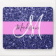 Glam Pink Navy Blue Glitter Sparkles Name Monogram Mouse Pad