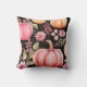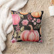 Perfect for Thanksgiving, Halloween, or any fall gathering that calls for some glam! Pink and orange pumpkins and flowers on a black background with a golden sunburst detail.