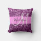 Glam purple glitter sparkles white monogram name and initial throw pillow. Your custom name and monogram are written in an elegant hand lettered script with a pink background. You can change the text colour and font style and size using the customise option. A perfect birthday or Christmas gift!