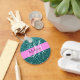 Glam pink and teal green glitter sparkles white monogram name and initial keychain. Your custom name and monogram are written in an elegant hand lettered script with a pink background. You can change the text colour and font style and size using the customise option. A perfect birthday or Christmas gift!