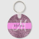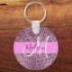 Glam Pink & Violet Glitter Sparkles Monogram Name Key Ring