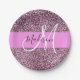 Glam Pink & Violet Glitter Sparkles Monogram Name Paper Plate
