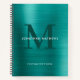 Glam Plain Brushed Metallic Teal Monogram Notebook