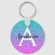 Glam Purple Aqua Glitter Sparkle Gradient Monogram Key Ring