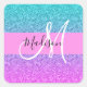 Glam Purple Aqua Glitter Sparkle Gradient Monogram Square Sticker