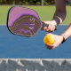 This unique pickleball paddle features a purple, black, and gold faux glitter marbleised agate design. Add a trio of initials to personalise it. Makes a great gift for bridesmaid, mum, daughter, sister, or anyone in the family who loves pickleball. Created by Simply Farmhouse Press.