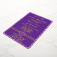 Real gold foil printing elevates these elegant purple Bat Mitzvah invitations and sets the tone for your daughter's special day. Designed with a mix of fonts for interest, each element on the front of these girly Bat Mitzvah invites is printed in real gold foil with the exception of the faux purple glitter border and the matching Star Of David in the centre of the band and medallion design at the bottom. Each invitation reverses to a pale pastel purple with the same faux purple sparkle border. Easy to customise, these real gold foil Bat Mitzvah invitations in faux purple glitter will add a unique touch to the happy celebration.