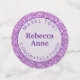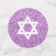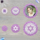 Dress up your Bat Mitzvah party tables with this personalised table confetti in purple glam with faux glitter images - the feel of sparkle without the mess! This table confetti includes a place for your daughter's photo, two pieces with text to personalise and a small round for a monogram letter. Easy to personalise, this light pastel lavender and purple faux glitter Bat Mitzvah table confetti is another way to add a truly custom feel to your party décor.