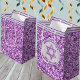 Personalise these simple faux purple glitter Bat Mitzvah gift bags as a chic way to present a gift to the birthday girl or as fun little bags to hold the Bat Mitzvah party favours and swag for your guests. The allover faux glitter background is accented with a pastel lavender purple and dark royal purple stripe detail around the top of each medium gift bag. A simple light purple circle on the front with a dark purple edge and two text templates in a curving dark purple font is further accented with a faux purple sparkle Star Of David symbol in the centre. Add the birthday girl's name or change either of the two wording areas to MAZEL TOV! or BIRTHDAY or THANK YOU FOR CELEBRATING WITH ME etc. to create the perfect purple faux glitter Bat Mitzvah gift bags for your celebration.