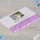 Collect memories in this lavender and purple Bat Mitzvah guest book featuring your daughter's photo. Pale pastel purple is the backdrop for your daughter's photo framed in a dark royal purple at the top of the front cover. Below is a fun script font in deep purple for your daughter's name and then a smaller and much simpler font is where you can add the date of the Bat Mitzvah. The design is completed with a thick border of purple faux glitter at the bottom that wraps around to the back. Create a beautiful keepsake for your daughter with this purple personalised Bat Mitzvah guest book.
