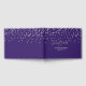 Glamourous wedding guest book done in purple with graphics of diamonds scattered across the top half. Silver tone graphic text reads Guest Book. Personalise the custom text, for your special day.