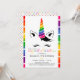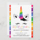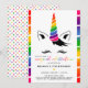 Set the tone for a magical celebration with the Glam Rainbow Unicorn Birthday Party Invitation designed by Enchantfancy Design Company. This 5" x 7" invite features the outline of a unicorn's face complete with glamourous eyelashes, ears, a tuft of hair and a fabulous bright rainbow unicorn horn. The back of the invitation has a pattern of rainbow stars. This joyful design is perfect for anyone who loves unicorns and rainbows.