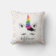The Glam Rainbow Unicorn Throw Pillow designed by Enchantfancy Design Company features the outline of a unicorn's face complete with glamourous eyelashes, ears, a tuft of hair and a fabulous bright rainbow unicorn horn. A pattern of rainbow stars accent the background. Personalise with your choice of name! This throw pillow will add a touch of whimsy to any child's bedroom decor.