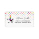 The Glam Rainbow Unicorn Address Labels designed by Enchantfancy Design Company features the outline of a unicorn's face complete with glamourous eyelashes, ears, a tuft of hair and a fabulous bright rainbow unicorn horn. A pattern of rainbow stars accent the background.
