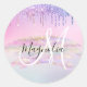 Glam Rainbow Unicorn Ombre Glitter Pink Monogram Classic Round Sticker