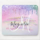Glam Rainbow Unicorn Ombre Glitter Pink Monogram Mouse Pad
