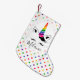 The Glam Rainbow Unicorn Small Christmas Stocking designed by Enchantfancy Design Company features the outline of a unicorn's face complete with glamourous eyelashes, ears, a tuft of hair and a fabulous bright rainbow unicorn horn. A pattern of rainbow stars accent the background. Personalise with your choice of name! Perfect for the unicorn lover in your life.