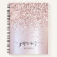 Girly Blush Rose Gold Glitter Glam Metallic Monogram Name Script Custom Personalised Cookbook Recipe Notebook. These design featuring your first name in a pretty hand lettered style swash tail font typography on faux rose gold metallic foil with sparkle glitter border. These are easy to customise and can be used as a Cookbook, Recipe Planner and more. Also great stylish feminine gift for birthday, mother’s day, wedding, bridal shower, anniversary and for anyone who loves glamourous style.