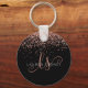 Glam Rose Gold Glitter Elegant Monogram Keychain, Easily personalize this trendy chic keychain design featuring elegant rose gold sparkling glitter on a black background. The design features your handwritten script monogram with pretty swirls and your name.