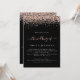 Glam Rose Gold Glitter QR Code Black Wedding Invitation