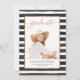 Affordable custom printed graduation photo announcements and party invitations with simple templates for customisation. This chic feminine design features a faux rose gold foil border and black and white watercolor stripe background. Personalise it with your photo and add your graduation announcement and party details on the back side. Use the design tools to change the text fonts and colours, add more photos and create a unique one of a kind design for your grad!
