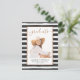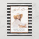 Affordable custom printed graduation party invitations. This chic feminine design features a photo collage layout with faux rose gold foil border and black and white watercolor stripe background. Personalise it with your photo and add your graduation party details on the back side. Use the design tools to change the text fonts and colours, add more photos and create a unique one of a kind design for your grad!