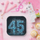 Celebrate in style with this customisable 45th birthday paper plate! The design features a bold, sparkling “45” surrounded by shimmering blue gemstones, exuding sophistication and festivity. A sleek script displays “Happy Birthday,” but you can personalise it with any name for a truly unique touch. Elegant and eye-catching, this plate is the perfect addition to your milestone celebration.