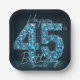 Glam Sapphire Blue & Black Gemstone 45th Birthday Paper Plate