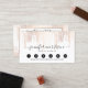 Your name or business name is elegantly displayed in a script font for a stunning impression on this designer loyalty business card. A delicate background of falling confetti dots in faux rose gold gives the illusion of shimmer. This double-sided card provides ample room on the backside for your contact info and social media. A beautifully designed card for makeup artists, hair stylists, beauty salons, boutiques and more. Please contact the designer if you need help with longer names or special typesetting. Art and design © 1201AM Design Studio | www.1201am.com