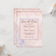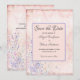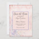 A beautiful glam shabby chic save the date wedding card. Pink with dark grey lettering. Add your details and the bride and groom's names.