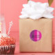 Modern personalised round return address label design featuring your name and address written on a sparkly magenta metallic background. The text can be entirely changed. To make adjustments, choose Personalise. To make more changes, such as altering the font, font colour, or text layout, use the Edit design tool.