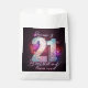 Send your guests home with a dazzle using these fun and energetic favor bags! The design features a large number "21" with a realistic silver disco ball mirror texture, perfectly capturing the excitement of a legal-age celebration. Surrounded by floating musical notes and a glowing bokeh effect in vibrant shades of pink, purple, and blue, this theme is ideal for a girls' night out, a dance club party, or a karaoke birthday bash. The dark background makes the neon colors pop, creating a glamorous nightlife aesthetic. Easily personalize the script text with the birthday girl's name to say "Thank You" in style.