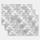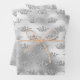 These gift wrap sheets feature a glam design of faux silver glitter crowns on a faux silver foil background.