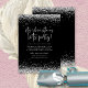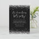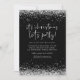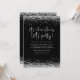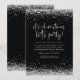 Glam Silver Glitter It’s Christmas Let’s Party Black sparkle for your Holiday gathering with silver faux glitter bordering the top and bottom edges on both sides and a set handwriting style script for the main heading typography on a classy black background with white typography. Easily personalise the rest of the text to your own details.