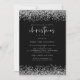 Glam Silver Faux Glitter Christmas Party Black. Available digitally and printed. A faux glitter border is on each side top and bottom, and Christmas is in a set lowercase handwriting style script. Easily personalise the rest of the text to your own details. You can also change the text and background colours via the customise further option if you wish.