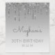 These chic thirtieth birthday wine bottle labels feature a sparkly silver faux glitter drip border and silver ombre background. Personalise them with her name in grey handwriting script, with her birthday and date below in serif font.
