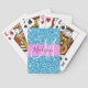 Glam and girly sky blue/ aqua and pink glitter sparkles white monogram name and initial playing cards. Your custom name and monogram are written in an elegant hand lettered script with a pink background. You can change the text colour and font style and size using the customise option. A perfect birthday or Christmas gift!