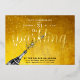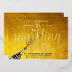 Ring in the celebrations with this stylish and glamourous New Year party invitation! Featuring a vintage-inspired sparkling champagne bottle set against a shimmering faux gold background with glittery confetti, it instantly sets the tone for an unforgettable night. The front is enhanced with a bold, modern foil-style script, adding elegance and shine. The back continues the luxe design with a matching golden textured background for a cohesive, upscale look. All text is fully customisable, so you can personalise it for your event—whether it’s a chic New Year’s Eve party or transformed into a sophisticated birthday invitation for men or women.