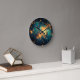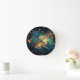 Glam stylish cosmic galaxy clock. Striking wall art Clock in various shapes and sizes. Beautiful world amongst the stars with cool green tones and a warm pop of yellow and orange detail.