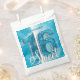 Add a touch of sparkle to your milestone celebration with these glamorous Sweet 16 favor bags. The design features a stunning faux diamond and silver gemstone number "16" set against a radiant teal and turquoise bokeh background. The word "Sweet" appears in elegant white script, accompanied by the birthday girl's name, which can be easily personalized to create a unique keepsake. These bags are perfect for packaging candy from a dessert buffet, small trinkets, or thank-you treats for your party guests. They offer a luxurious, high-end look with printed textures that mimic the shine of real jewels without the mess of real glitter.