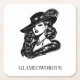 Glam Woman with Cat Fashion Illustration Square Paper Coaster