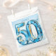 Celebrate a major milestone in style with this glamorous blue gemstone 50th birthday party favor bag. Featuring a luxurious 3D light blue and gold jewel typography design, this elegant treat bag is the perfect finishing touch for a women's fiftieth birthday celebration. The sapphire blue diamond accents add a beautiful sparkle that guests will love. Perfect for holding sweet treats, candies, or small thank you gifts, these chic blue and gold birthday favor bags will elevate your party decor beautifully.