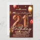 Glamorous Burgundy Red Gold Balloon 21st Birthday Invitation