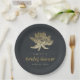 GLAMOROUS GOLD BLACK LOTUS FLORAL BRIDAL SHOWER PAPER PLATE