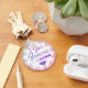 Done in colors of purple and pink with a jewel frame and punctuated with a sparkly diamond. It says "I give glamour" with an image of a purple syringe finishing the quote. Pretty, fun and humorous. Perfect for a nurse or any healthcare worker.