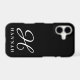 Glamorous script typography name initial monogram iPhone 11 Pro Max Case. Make your own custom cover with fancy lettering. Customizable black and white colors. Beautiful monogrammed design for him or her. Personalized smartphone cases for men, women and kids. Also available for older models and other brands like Samsung Galaxy.
