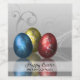 An elegant glamour easter illustration: Metalic style Easter eggs with silver swirls on an elegant white-grey background.